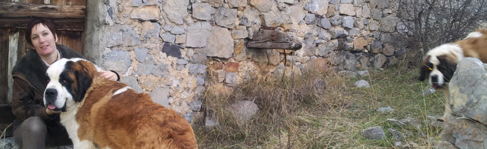 son petit élevage familial de Saint Bernard dans un environnement naturel de montagne.