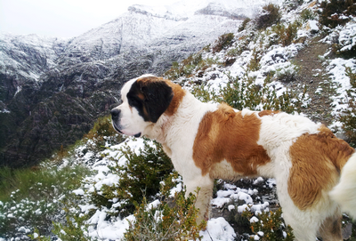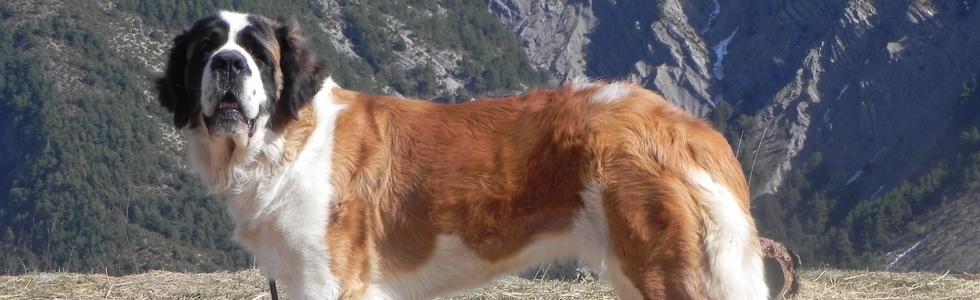 son petit élevage familial de Saint Bernard dans un environnement naturel de montagne.